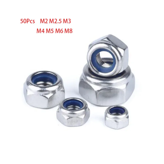 Бесплатная доставка 50 шт. DIN985 M2 M2.5 M3 M4 M5 M6 M8 304 нержавеющая сталь нейлон самоблокирующиеся Шестигранные Гайки