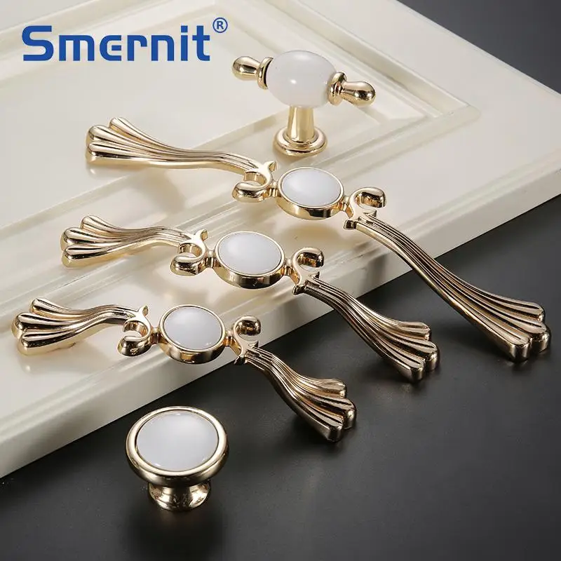 Европейские золотые двери рукоятки и ручки для Кухня Кабинет керамика цинковый сплав мебель ручки для ящиков комодов Аппаратные средства
