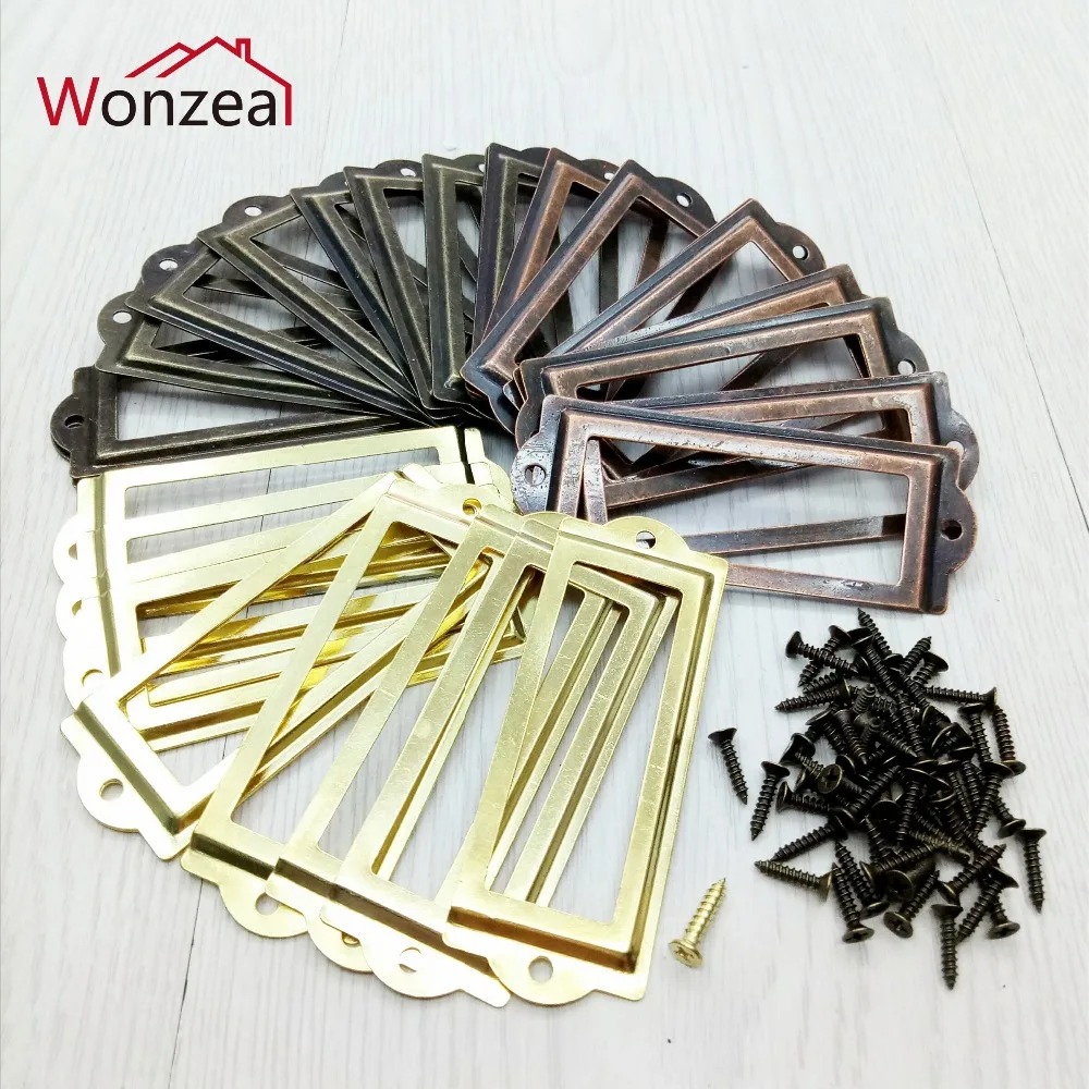 10 шт. 84*30 мм античная латунь Винтаж металлические этикетки тянуть рамки ручка имя файла держатель для карт мебель ящика шкафа Box Дело Bin