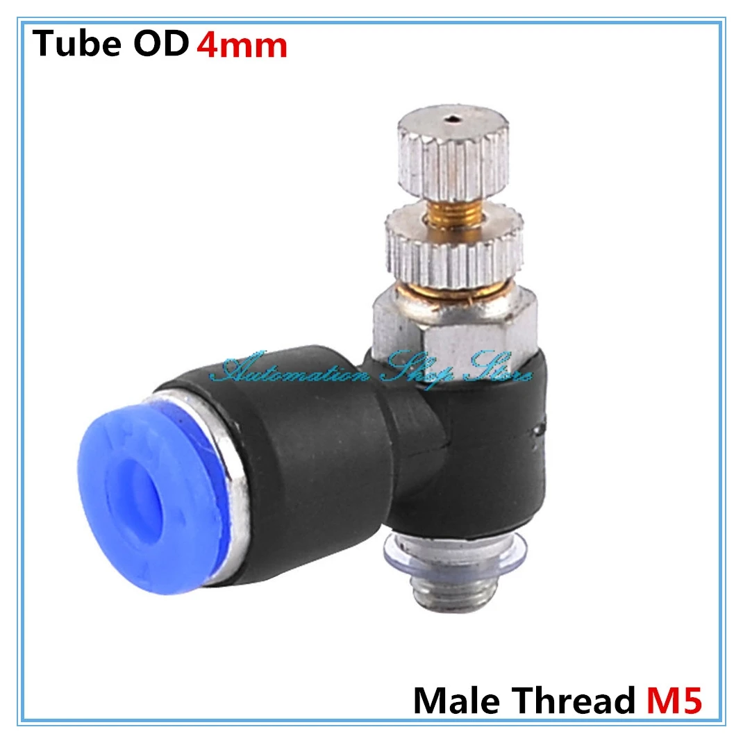 5 шт. 4 мм трубка-M5 (5 мм) наружная резьба пуш-ап для того чтобы соединить штуцер локоть пневматический Скорость регулятор потока фитинги SLA4-M5