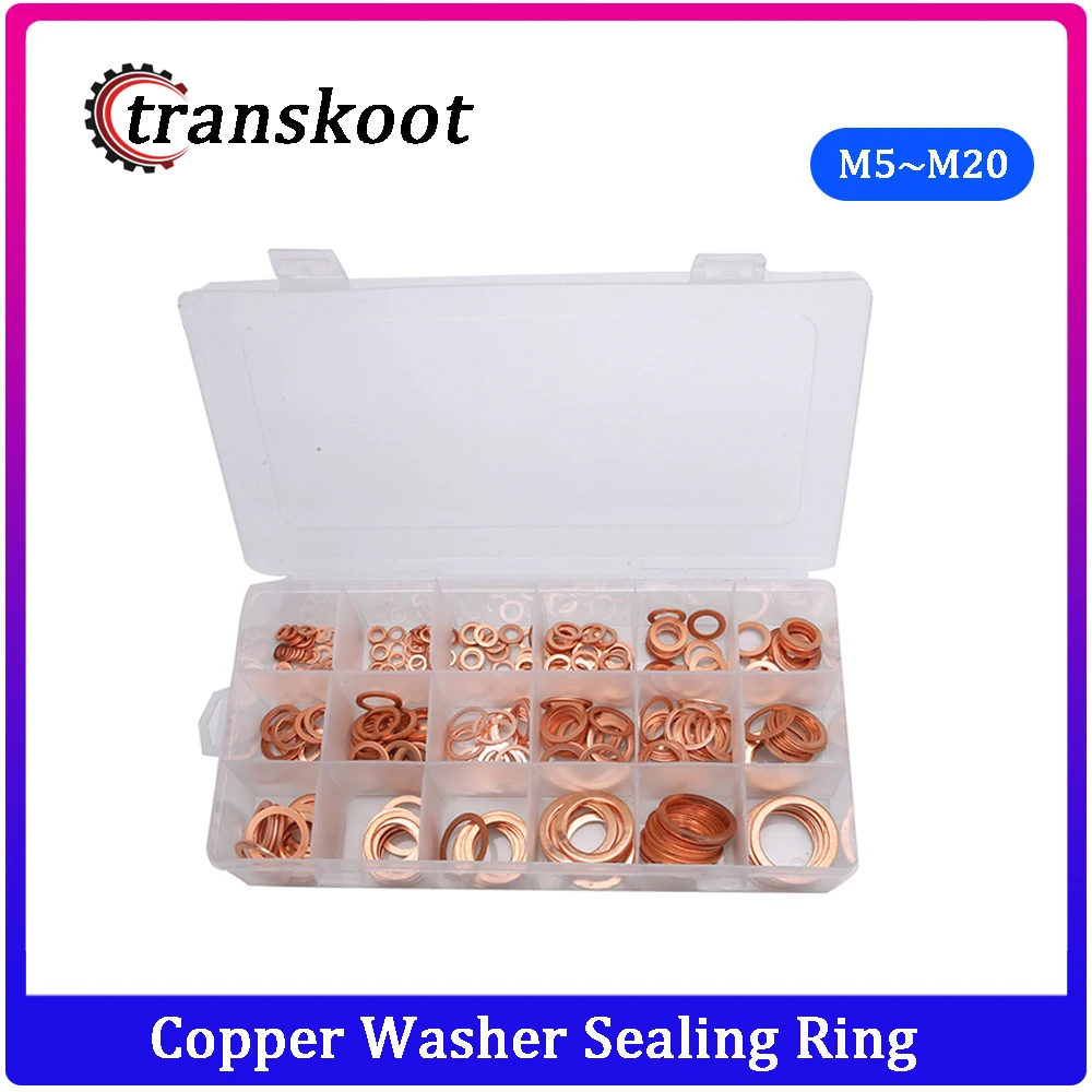 280 шт./компл. ассортимент красный твердая медь шайба уплотнительное кольцо комплект прокладок с случае 12 размеров
