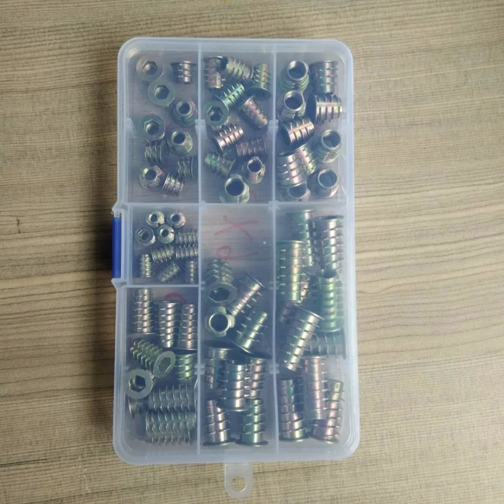 70 шт./компл. M4/M6/M8 * 8/10/13/18/20/25 резьба из цинкового сплава для деревянной вставки гайка Фланцевая Шестигранная головка мебельная Гайка Набор