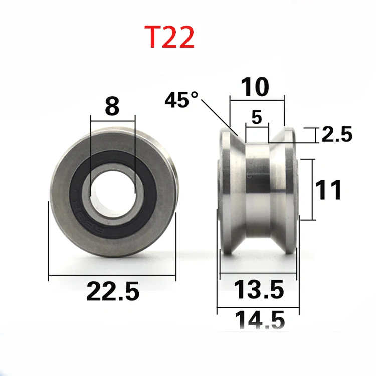 5 шт./лот CNC TU22 8 мм V/U паз шкив подшипники T22 8*22,5*14,5*13,5 мм V паз ролика колеса шарикоподшипник T-U-22