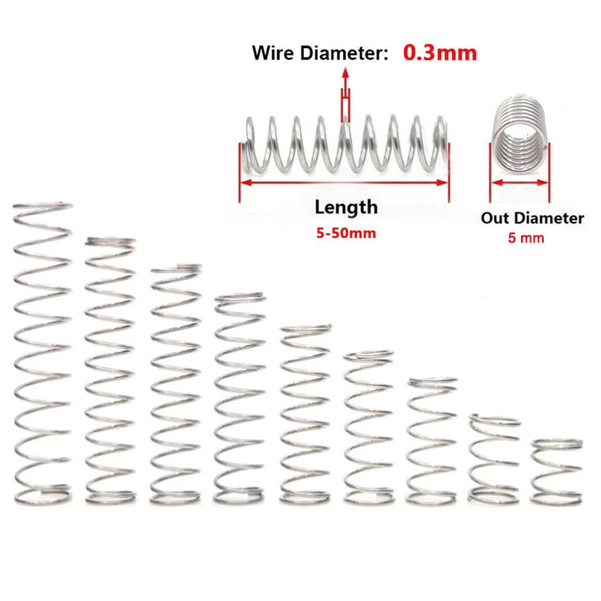 10 шт. сжатие небольшой пружинный диаметр проволоки 0,3 мм наружный диаметр 5 мм Длина давления 5 мм-50 мм 304 пружина из нержавеющей стали