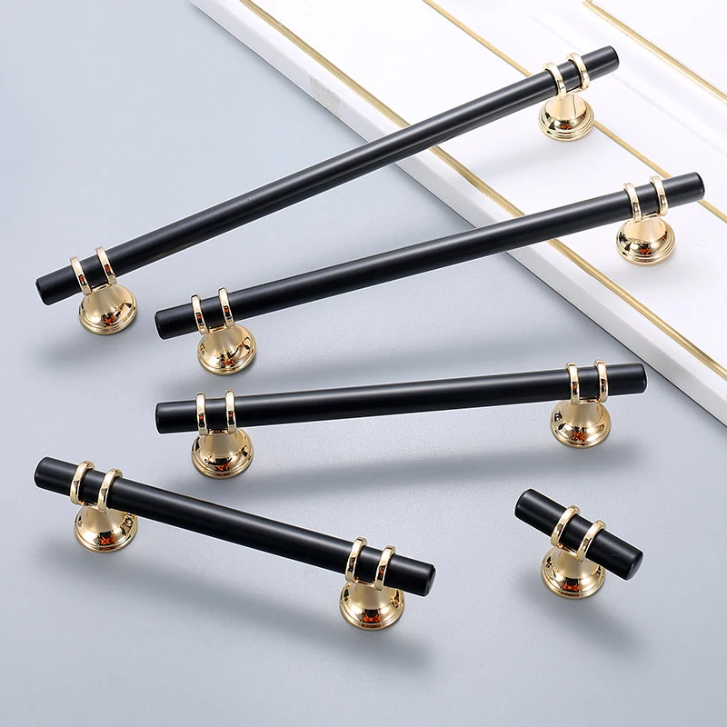 Скандинавский стиль/черные + золотые ручки для гардероба элегантные ручки и ручки для шкафа Т-бар прямая ручка для мебели