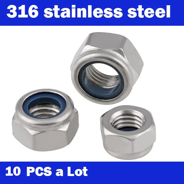 316,10 шт, M3 M4 m5 m6 m8 m10 m12 M20 оцинкованная 316 Нержавеющая сталь Self-Зажимная гайка замок гаечный блокиратор гайка скольжения нейлоновая Шестигранн...