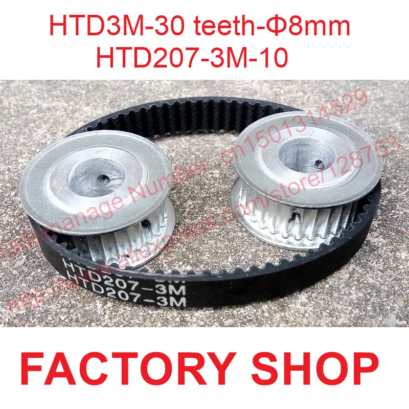 Высокое качество, 2 шт., 30 зубцов, HTD3M, зубчатый ролик, диаметр отверстия 8 мм + 1 шт., HTD 3 м, длина зубчатой ленты 207 мм, ширина 10 мм, S3M, бесплатная доставка