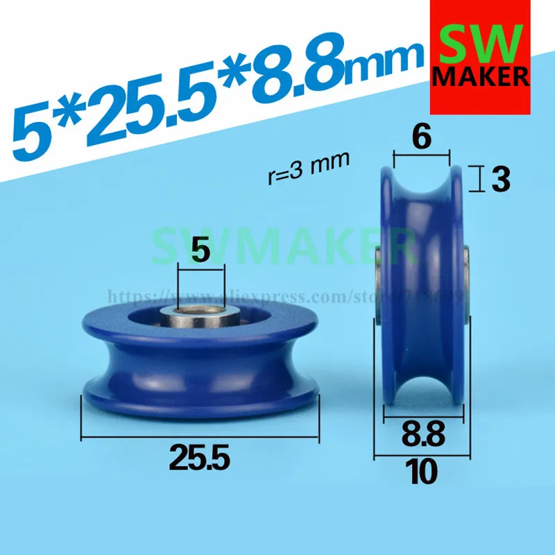 Рифленая стальной трос слинг шкива groove U Groove pom Нейлон роликовый подшипник шкива 5*25.5*8.8 мм