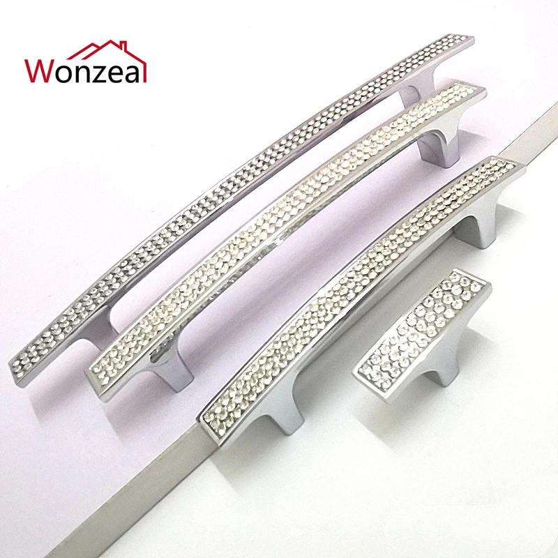 Одно отверстие/96 мм/128 мм/160 мм кристальная мебель ручка комода ящика Silver тянет ручки шкафа горный хрусталь стекло Кухня ручка