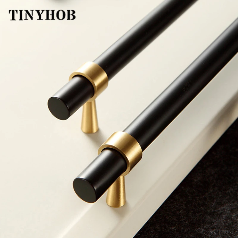 Черная твердая латунная дверца кухонного шкафа Т-образная ручка для шкафа Мебельная ручка ящика шкафа Ручка