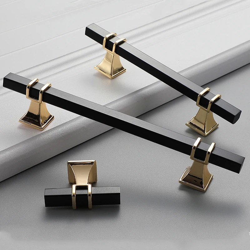 Квадратный стиль/черные + золотые ручки для гардероба, элегантные ручки и ручки для шкафа, ручки для выдвижных ящиков, ручки для спальни, Т-об...