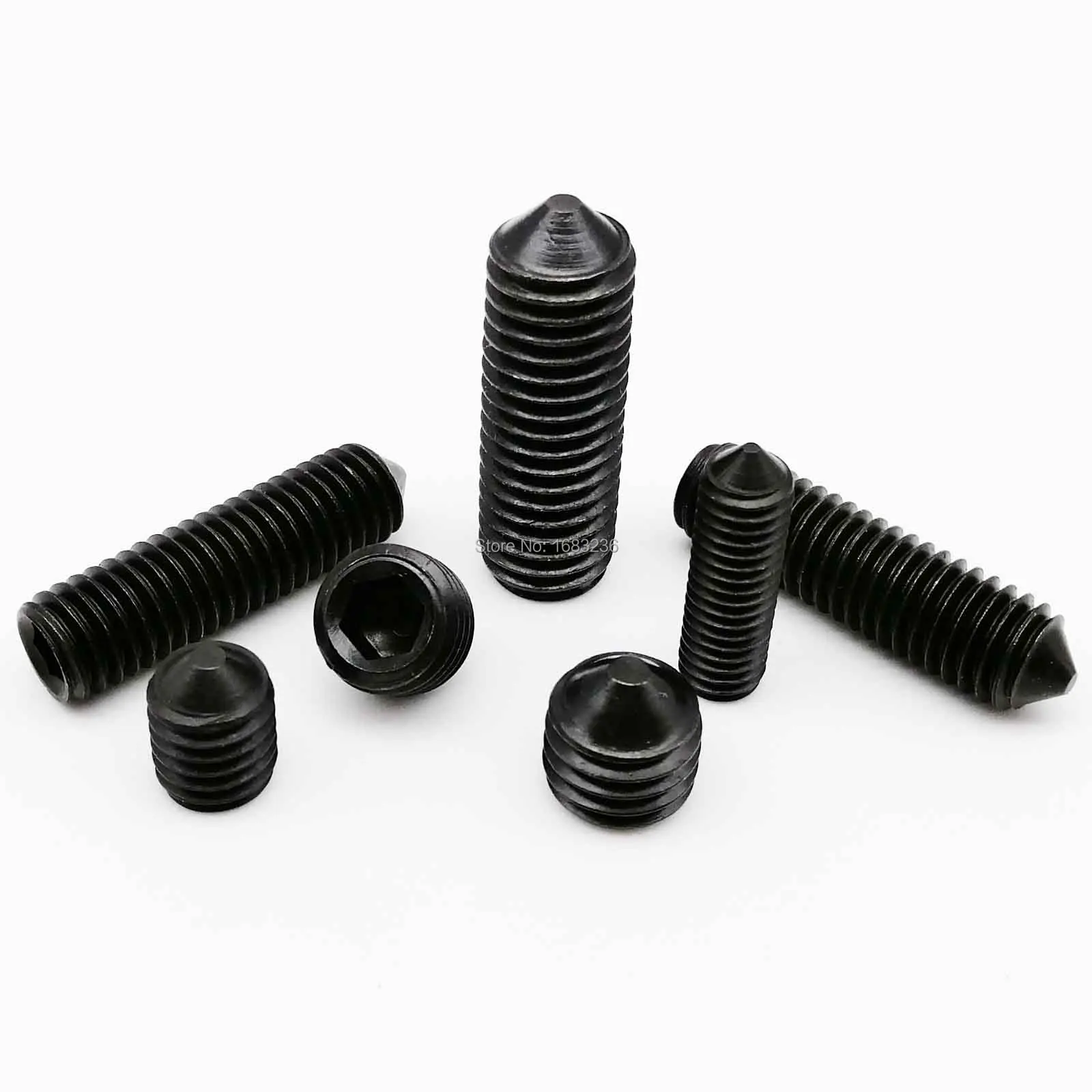 10/50X M3 M4 M5 M6 M8 M10 M12 DIN914 черный класс 12,9 сталь Шестигранная розетка Шестигранная конусная точка Grub набор ВИНТОВЫХ КОНИЧЕСКИХ торцевых болтов
