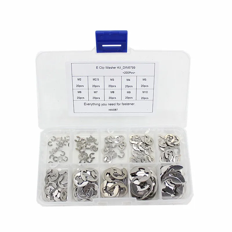 200 шт./компл. 304 Нержавеющая сталь E Клип Комплект шайб в ассортименте 2 3 4 5 6 7 8 9 10 мм стопорное кольцо для вала застежка-молния