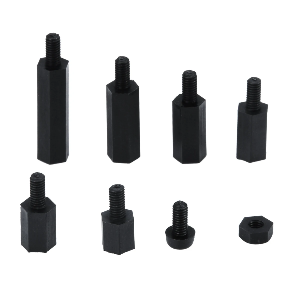 180 шт. Новый M3 Шестигранные темы распорки Male-Female винт черный нейлон винты, гайки Стенд-офф Замена Комплект С Пластик коробка
