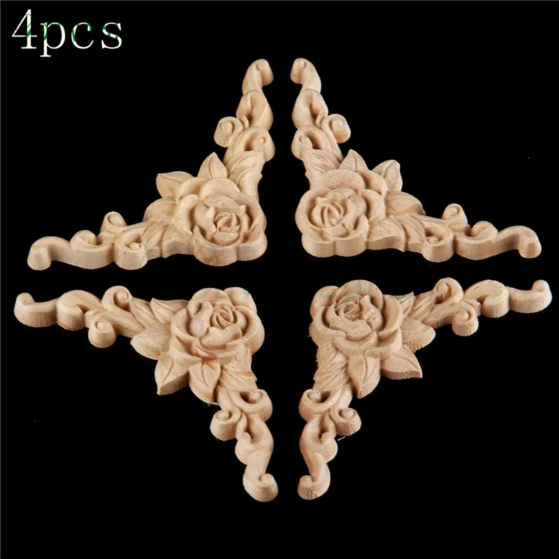 Bowarepro 4 шт. розового дерева Вырезка наклейка для Мебель украшения цветочный деревянный аппликация резные украшения Дверь Декор ремесла 8*8 см