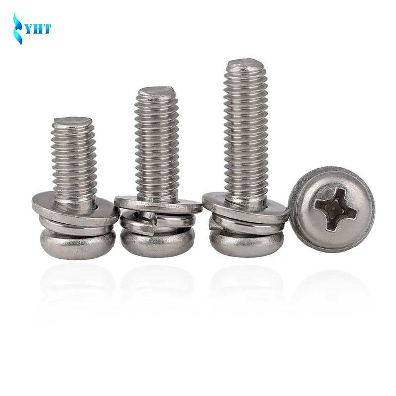 Метрическая резьба M2 M2.5 M3 M4 304 нержавеющая сталь Phillips Pan Head три комбинированных винта три sem шурупы с шайбой GB9074.4