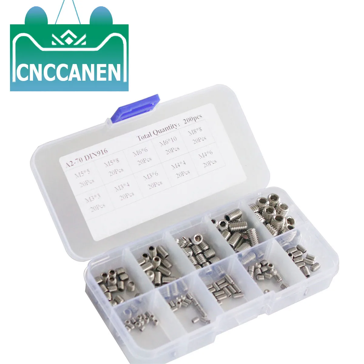 200 шт Нержавеющая сталь и черного дерева винты Allen головкой Hex комплект Grub ассортимент винтов Кубок Точка parafuso ассортимент