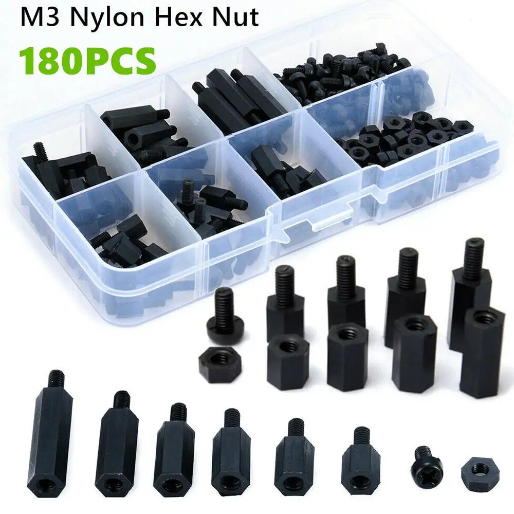 180 нейлоновые шестигранные шпильки Шестигранная изолирующая Колонка винт гайка стоячий Ассортимент Комплект черный
