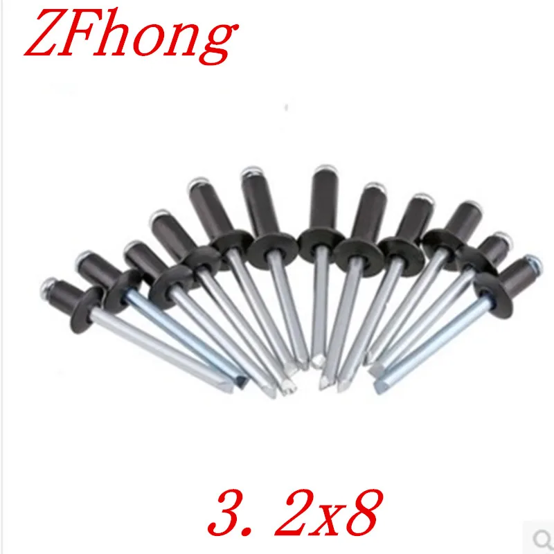 100 шт. 3.2*8 3.2 мм черный алюминиевый поп-заклепка купола голову конце