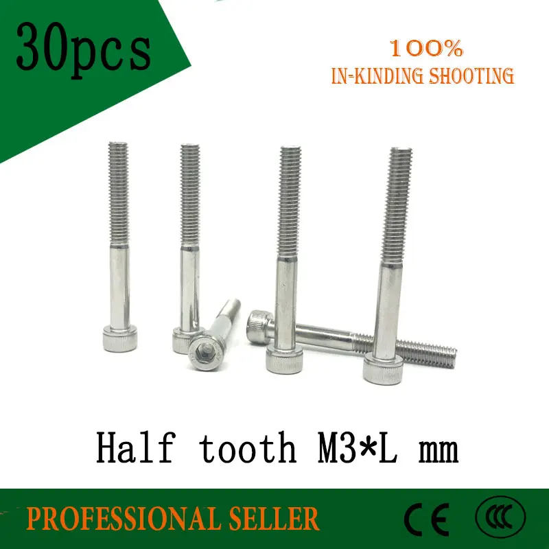 Половина зубчатая пластина с плоского винты с потайной головкой и Класс 12,9 сплав Сталь с шестигранной головкой Кепки винт 30 шт. M3x30/35/40/45/50 мм