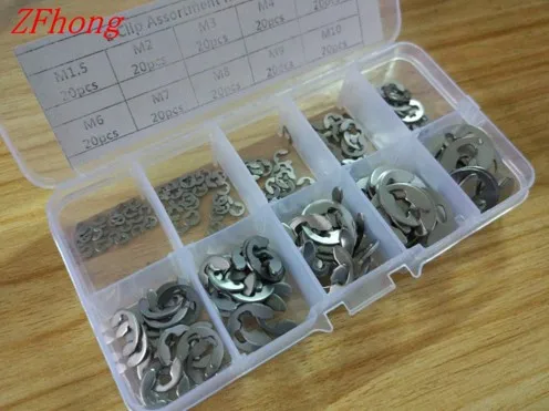 200 шт Нержавеющая сталь E Clip Ассортимент Kit 1,5 2 3 4 5 6 7 8 9 10 мм стопорное кольцо, удерживающее для вала крепежа