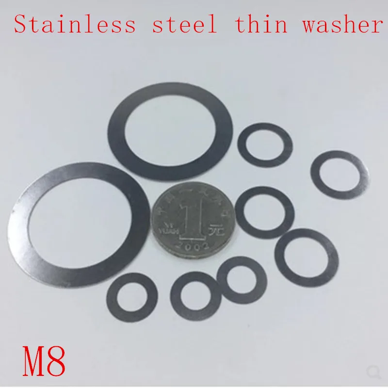 100 шт. M8 тонкая шайба 0,2 мм 0,3 мм 0,5 мм Нержавеющая сталь 304 ультра-тонкая плоская шайба прокладка регулировка зазора шайба