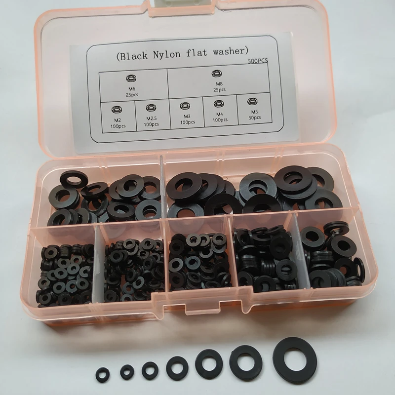 500 шт./кор. DIN125 iso7089 M2 M2.5 M3 M4 M5 M6 M8 черный/белый Пластик нейлоновая шайба покрытием плоская прокладка уплотнения шайба прокладка Наборы