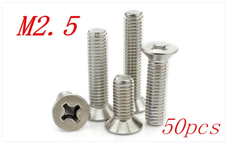 Метрика M2.5 * 4/5/6/8/10/12/14/16/18 -30 мм 304 Нержавеющая сталь крест с плоской головкой с потайной головкой Болты 50 шт./лот Бесплатная доставка
