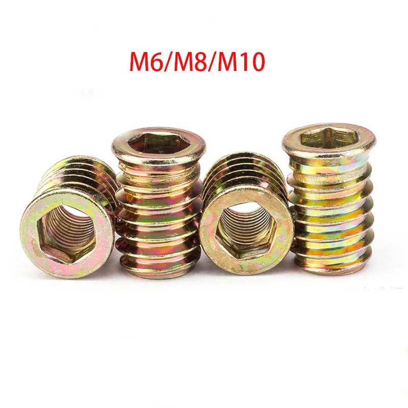 10 шт./20 шт. M6/M8/M10 цинкового сплава железа внутри углеродистой стали шестигранный разъем привода вставные гайки с резьбой для деревянной мебе...