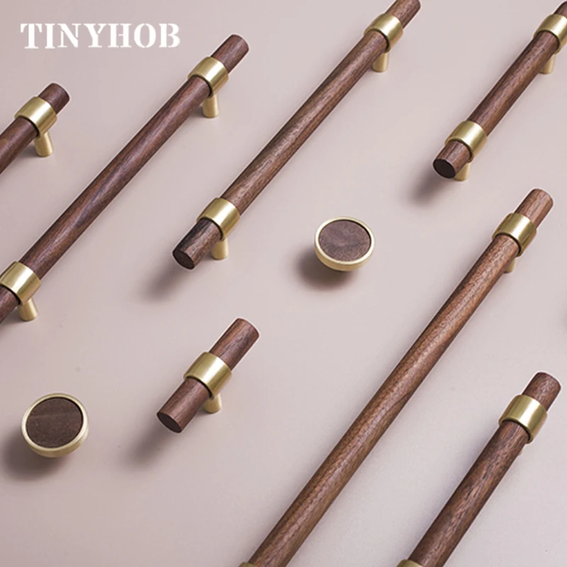 Натуральная древесина + латунь т бар дверные ручки Мебель американский стиль ручки для открывания ручки кухонного шкафа