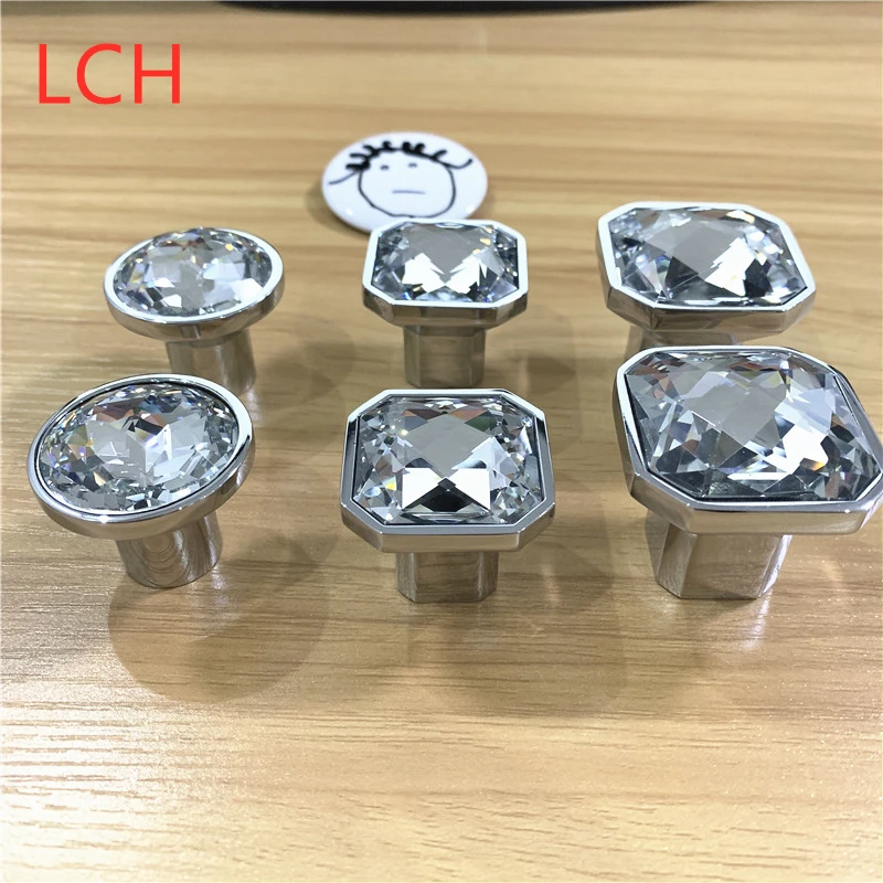 Быстрая доставка 32 мм 38 мм недавно разработанные площади прозрачного хрусталя Кабинет ручку на хром цинка базы Кабинет Ручка дверную ручку ...