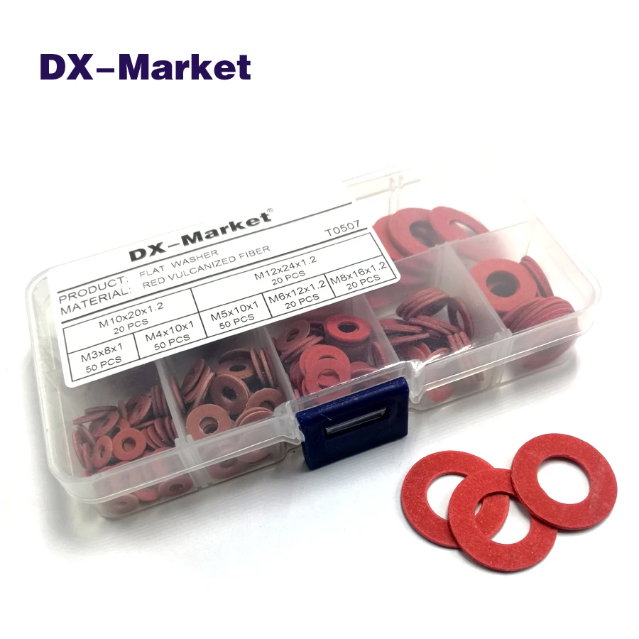 M3 M4 M5 M6 M8 M10 M12 красный вулканизированной волоконная шайба комплект, 230 шт. изоляционная прокладка шайбы, красный изоляционные шайба, T0507