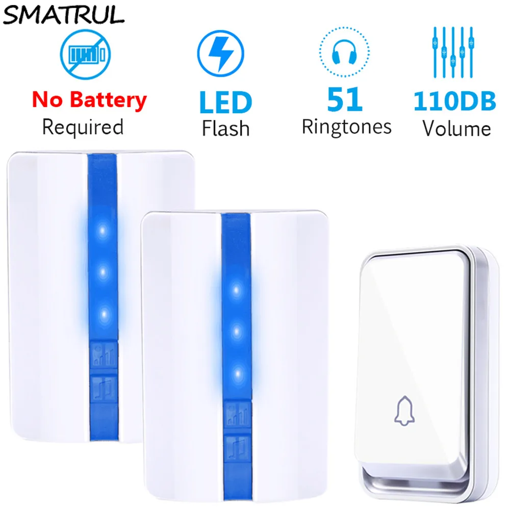 Smatrul автономным питанием Водонепроницаемый Беспроводной дверной звонок без батареи ЕС Plug Smart беспроводной дверной звонок 1 пуговица 1 2 прие...