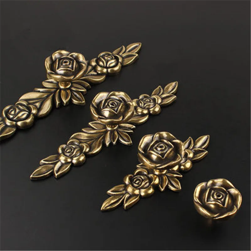 Античная ручка бронзовая роза ручка шкаф, ящик, туалет одно отверстие ручки садовая мебель двери тянет Handware аксессуары