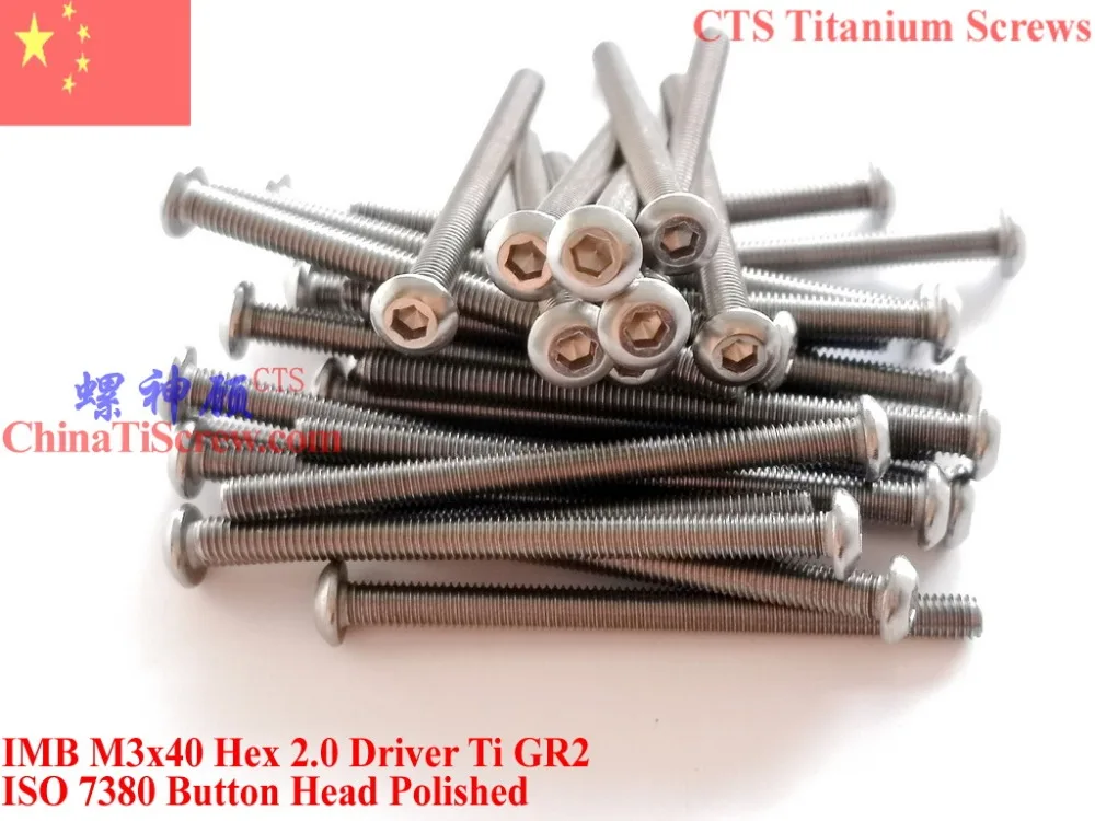Титановый винт M3x40 ISO 7380 Кнопка головка Шестигранная 2,0 драйвер Ti GR2 полированный 50 шт.