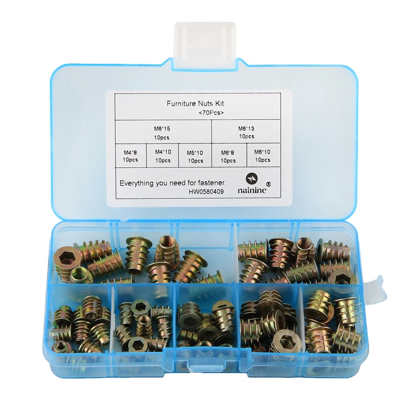 70 шт./компл. M4/M5/M6 * 8/10/13 сплав цинка нить для деревянные вставки гайка фланцевый Hex головка привода мебель орехи Ассортимент Комплект HW058