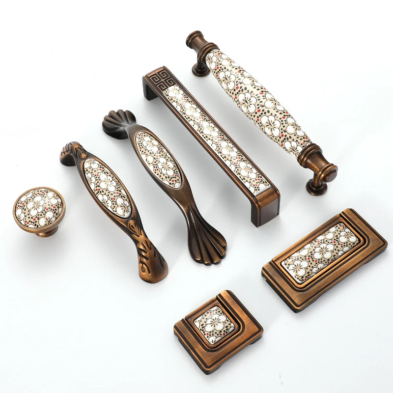 Античная бронза керамические ручки для шкафов винтажный ящик ручки дверные ручки к шкафу Европейская мебель металлическая ручка