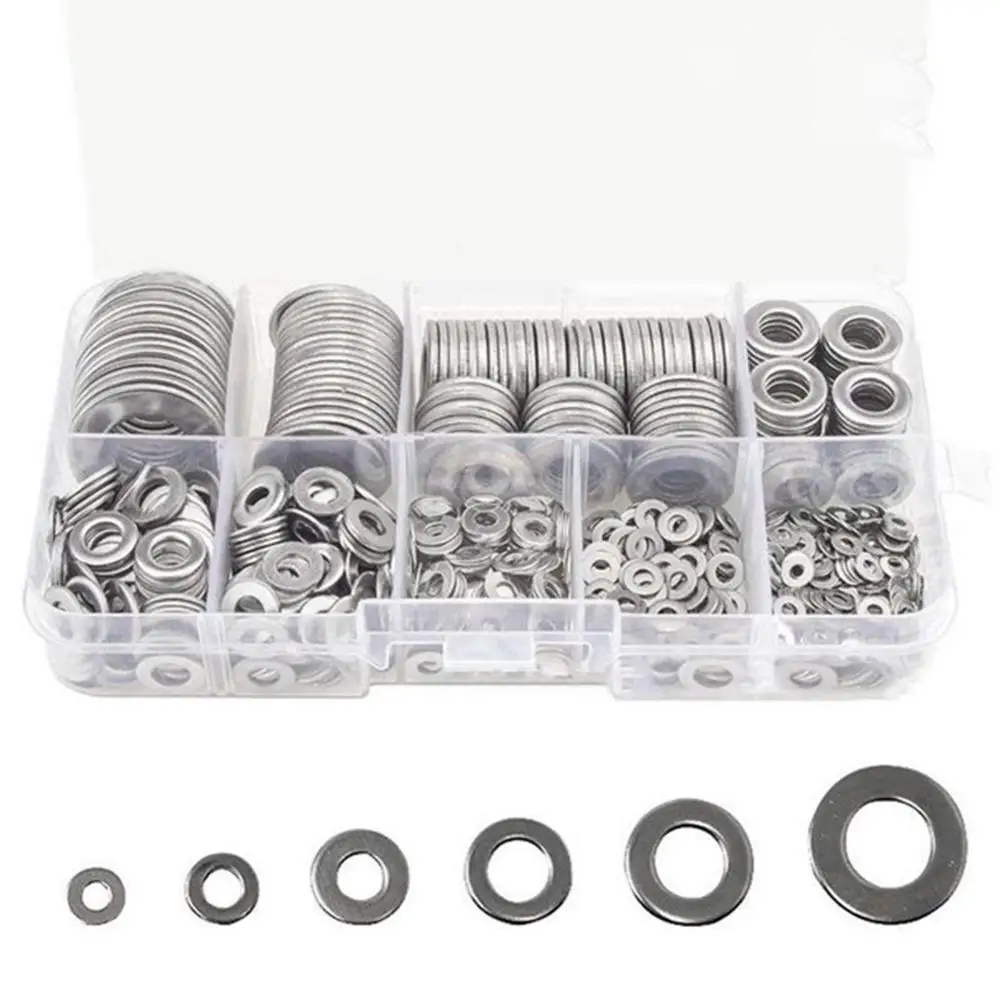 580 шт нержавеющая сталь M2 M2.5 M3 M4 m5 m6 m8 m10 m12 плоские шайбы комплект с коробкой