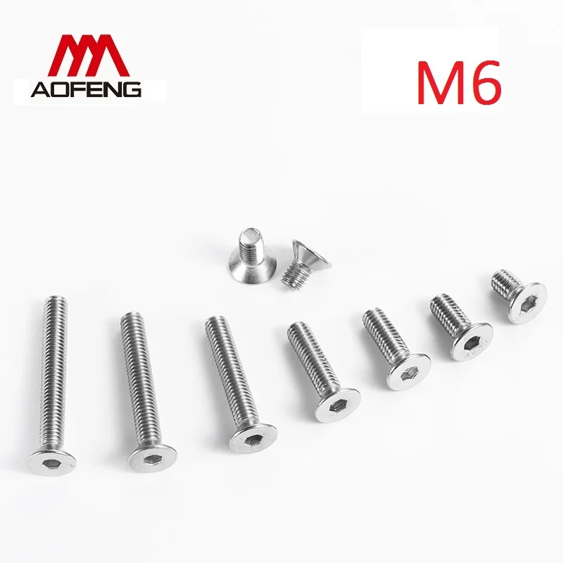 304 Stianless Сталь M6 Установочный винт с потайной головкой Винт с головкой M6 x 8 10 12 14 18 20 35, 40, 45, 50, 70, 80, 90, 100 мм
