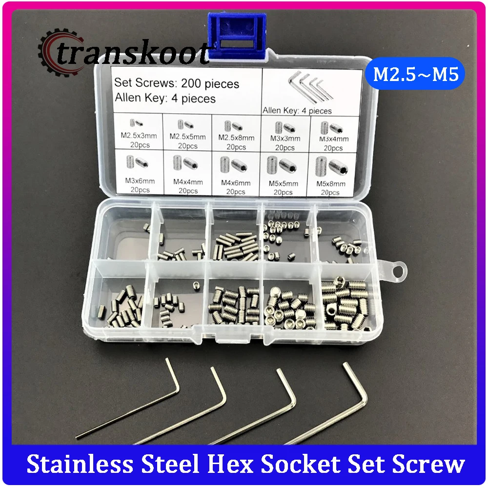 200 шт. Нержавеющая сталь Шестигранная комплект винт с 4 инструменты шестигранный ключ