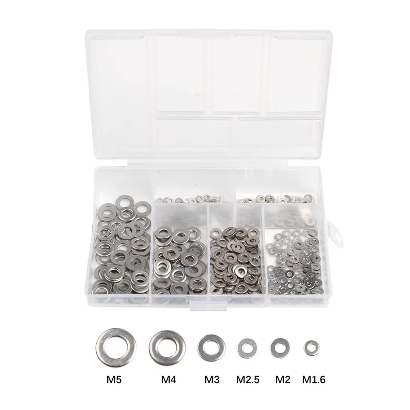 500 шт M1.6/M2/M2.5/M3/M4/M5 304 нержавеющая сталь плоская шайба простая шайба прокладки набор