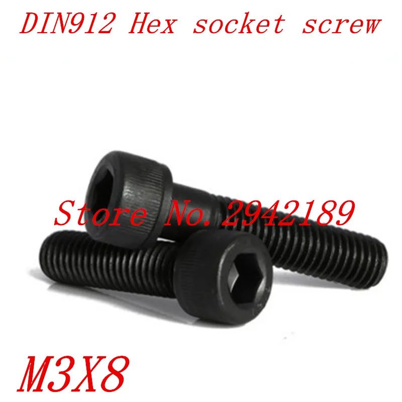 100 шт./лот метрической резьбой DIN912 M3x8 мм M3 * 8 мм черный Класс 12,9 сплав Сталь с шестигранной головкой Кепки болты