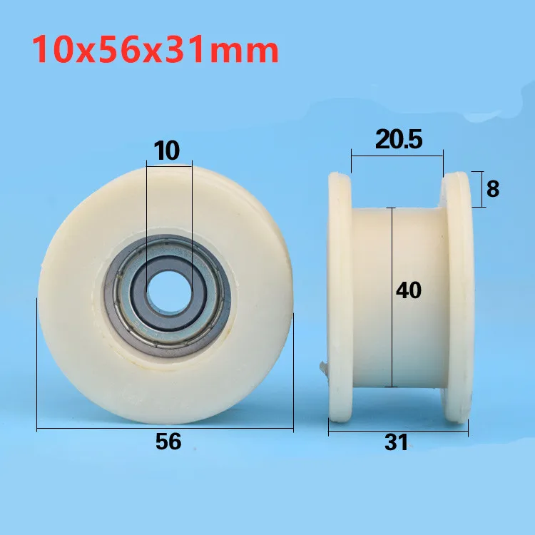 2шт 10x56x31 мм H Тип Нейлоновый шкив колеса Аварийная дверь направляющая колесо желобчатый ролик 608 роликовый подшипник колеса