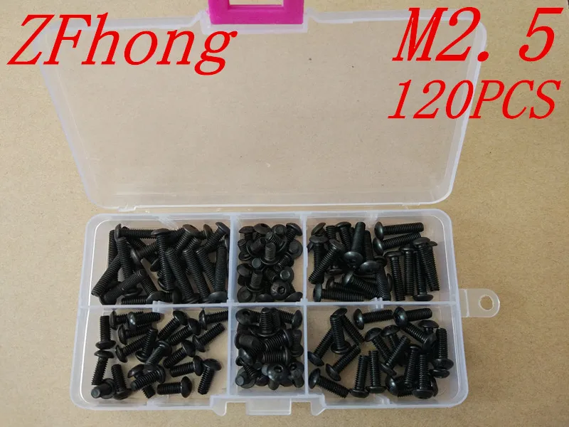 120 шт. ISO7380 Grade10.9 M2.5 2.5 мм длина 4 мм до 16 мм Кнопка Шестигранная головка винт Ассортимент комплектов