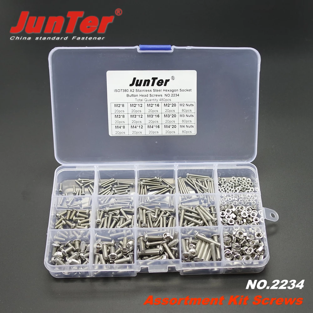 480 шт. M2 M3 M4 A2 Нержавеющая сталь ISO7380 с полукруглой головкой болты с шестигранной головкой Винты с шестигранной головкой с набор болтов в асс...