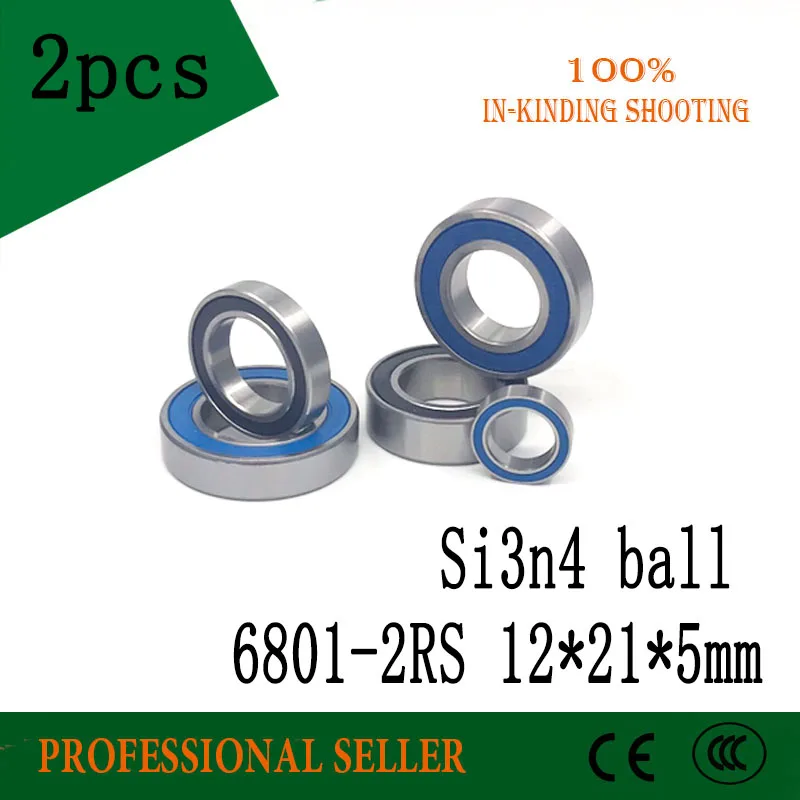 2 шт. 6801 Hybrid Керамика подшипник 12x21x5 мм Тормоза барабанного типа и запчасти 6801RS Si3N4 шарикоподшипниках