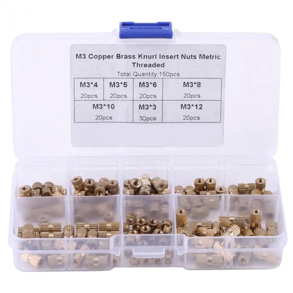 150 шт./компл. M3 латунные вкрапленные гайки с резьбой набор с пластиковой коробкой деревянная мебельная фурнитура