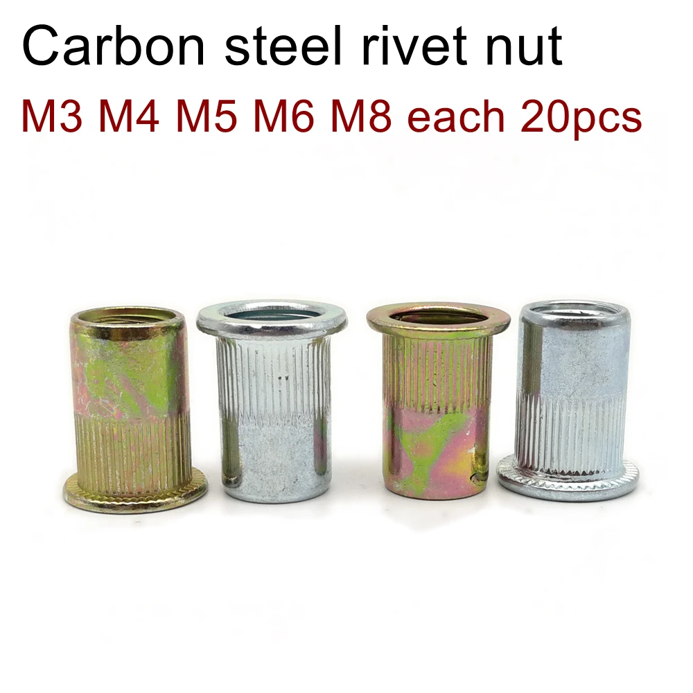 M3 M4 M5 M6 M8 каждый 20 штук заклепки, гайки Наборы углерода Сталь без каблука Резьбовая гайка глухая гайка с кольцевой вставкой