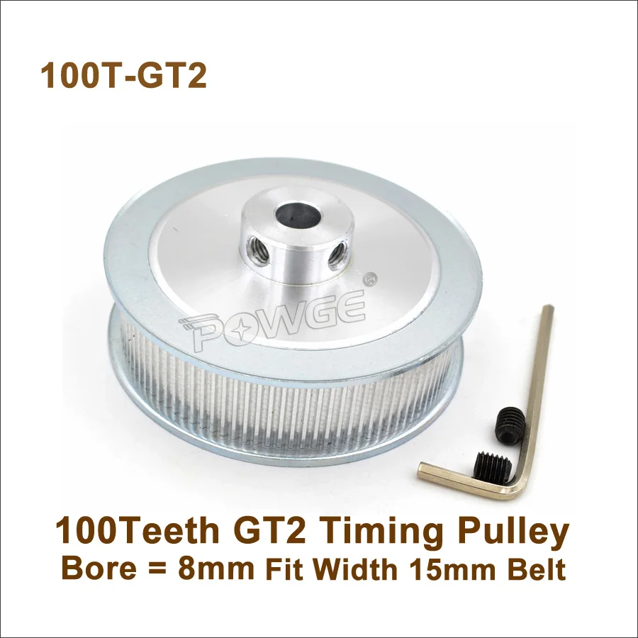 POWGE 100 зубьев 2GT зубчатый шкив диаметр 8 мм подходит ширина 15 мм GT2 синхронный ремень 100 зубьев 100 т GT2 зубчатый шкив