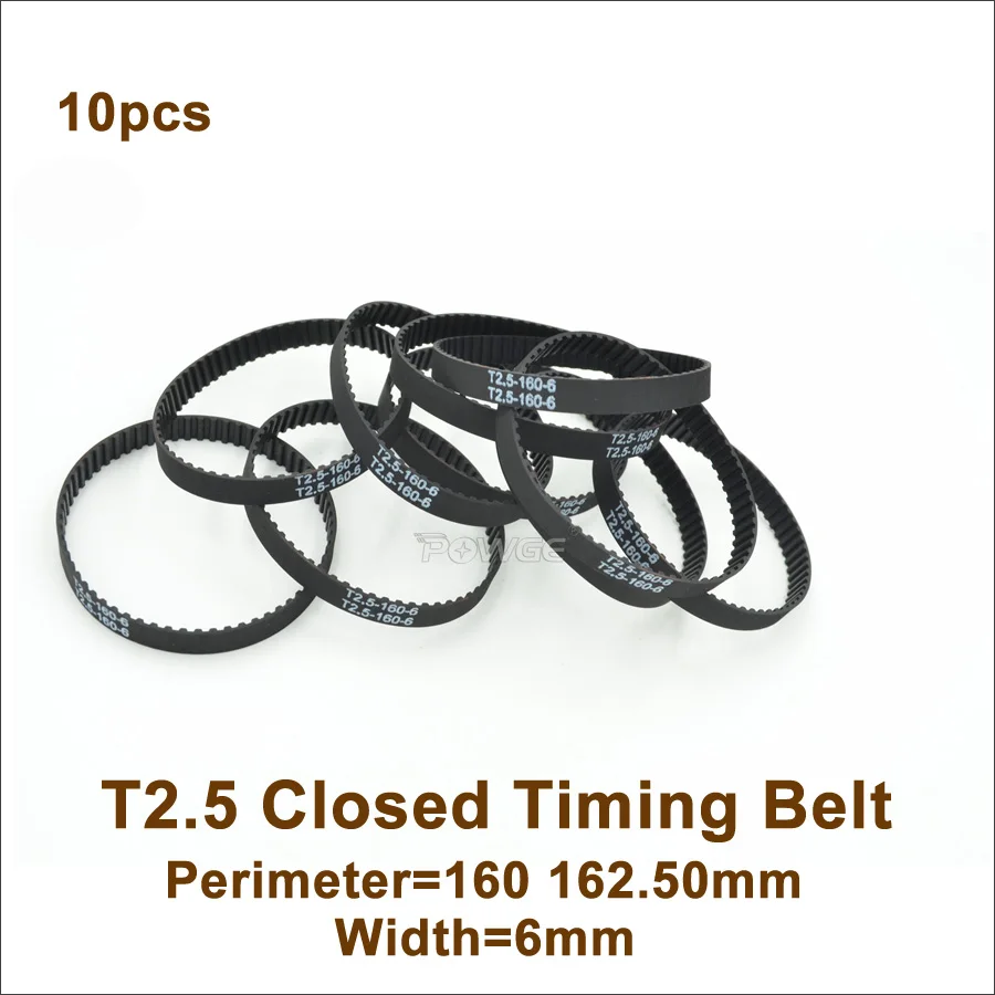 POWGE 160 T2.5 зубчатый ремень Ширина 6 мм Периметр 160 162,50 мм зубы 64 65 T2.5 неразъёмная застёжка-петля с резиновым ременем T2.5 зубчатый шкив 10 шт.
